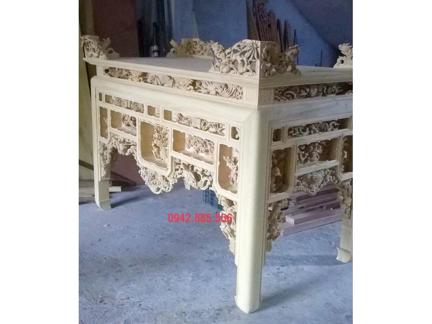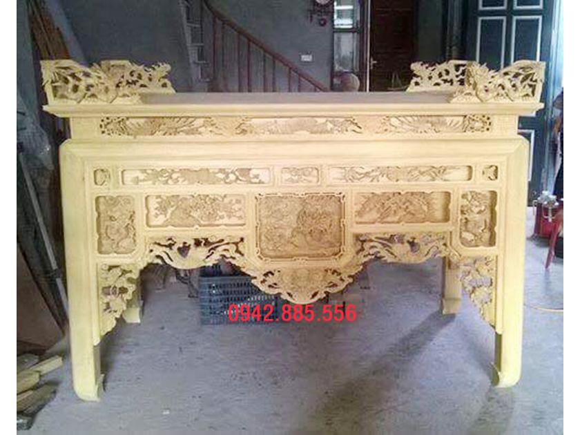 - Bàn thờ có khung hình chắc chắn, thường chế tác từ gỗ tự nhiên nguyên khối có chất lượng cao, dễ chạm khắc.