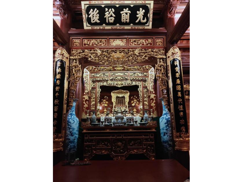 Đồng thời, việc chăm chút trang trí không gian thờ cúng qua cách bài trí cửa võng và các nội thất khác là cách thể hiện lòng biết ơn sâu sắc đối với ông bà, tổ tiên, cũng như cội nguồn dân tộc. Mỗi chi tiết trang trí tinh tế, trang nghiêm đều là một thể hiện sự tri ân đến cội nguồn.
