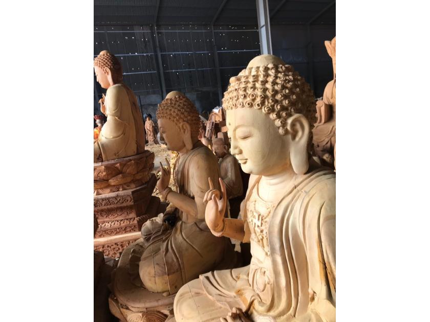 Sau khi đã tạo mẫu và điêu khắc các đường nét trên pho tượng thì ở bước này những đường nét, chi tiết sẽ được gọt đẽo sao cho hoàn thiện nhất tạo nên hình hài của pho tượng.