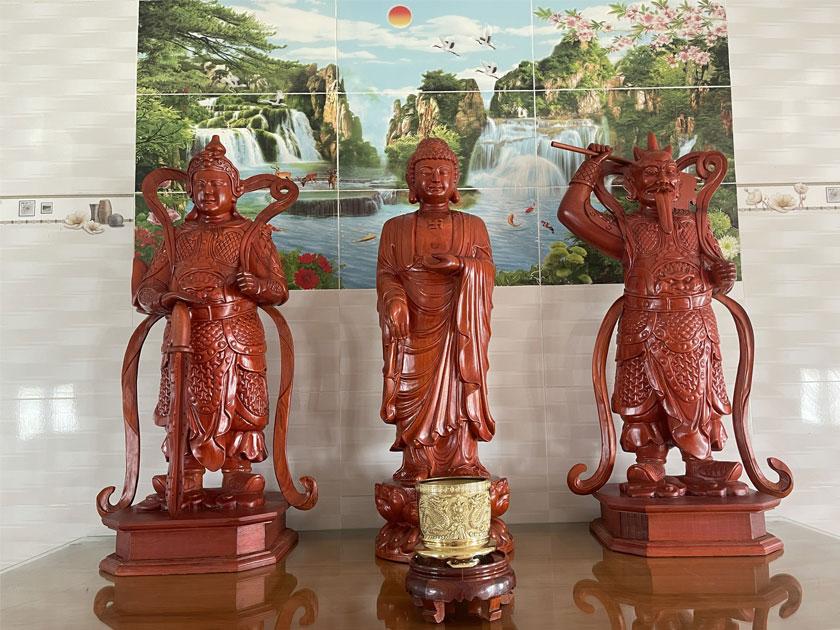 Nhờ nhiều năm kinh nghiệm trong chế tác tượng thờ cao cấp, nghệ nhân Thông Hồng chế tác bộ tượng La Hán 18 vị không cần mẫu sẵn, chỉ cần khách hàng cung cấp yêu cầu. Không ngoa khi nói, nghệ nhân Sơn Đồng chế tác tượng Phật giống như người thổi hồn vào những khúc gỗ mộc.